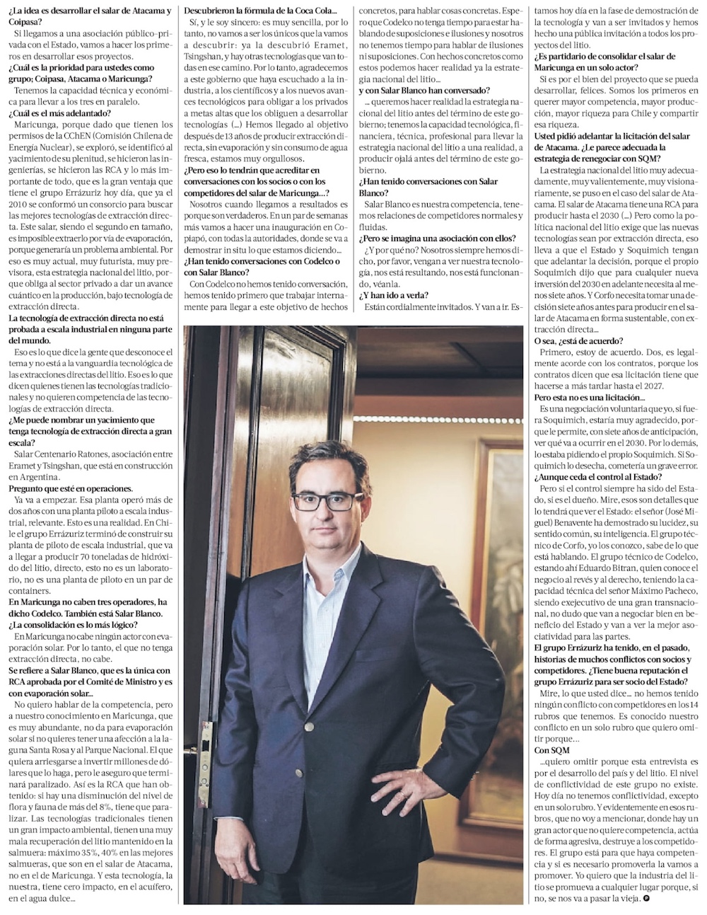 Marcelo Awad, director ejecutivo de la firma canadiense Wealth Minerals: “Entre no tener nada y ser dueños del 49,9%, tengo el respaldo de todos mis accionistas para ir adelante con el proyecto aunque seamos minoritarios - (El Mercurio de Santiago)
