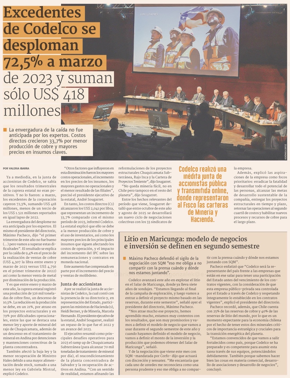 Codelco anota brusca baja de excedentes y espera en 2023 su menor producción en una década - (Pulso)