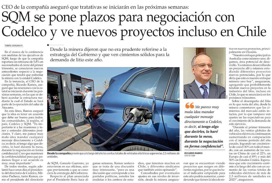 SQM espera iniciar pronto el diálogo con Codelco por el litio: “Tiene que ser un buen acuerdo para nosotros” - (Diario Financiero)
