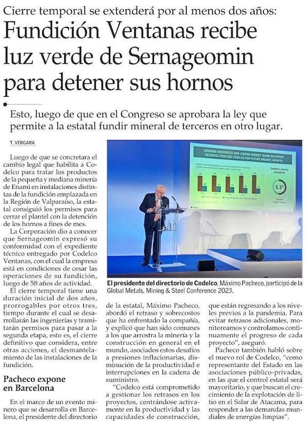 Sernageomin da visto bueno para el cierre de la fundición - (El Mercurio de Valparaíso)