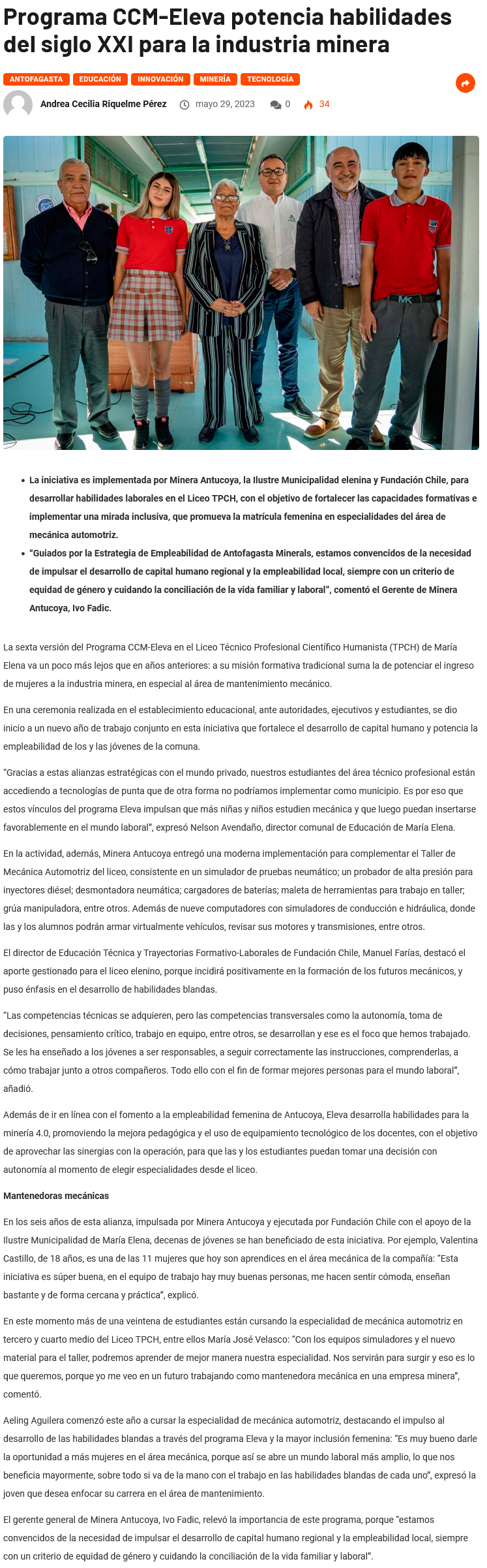 Lanzaron la sexta versión en María Elena: Programa CCM-Eleva potencia habilidades del siglo XXI para la industria minera - (portaleduca.cl)