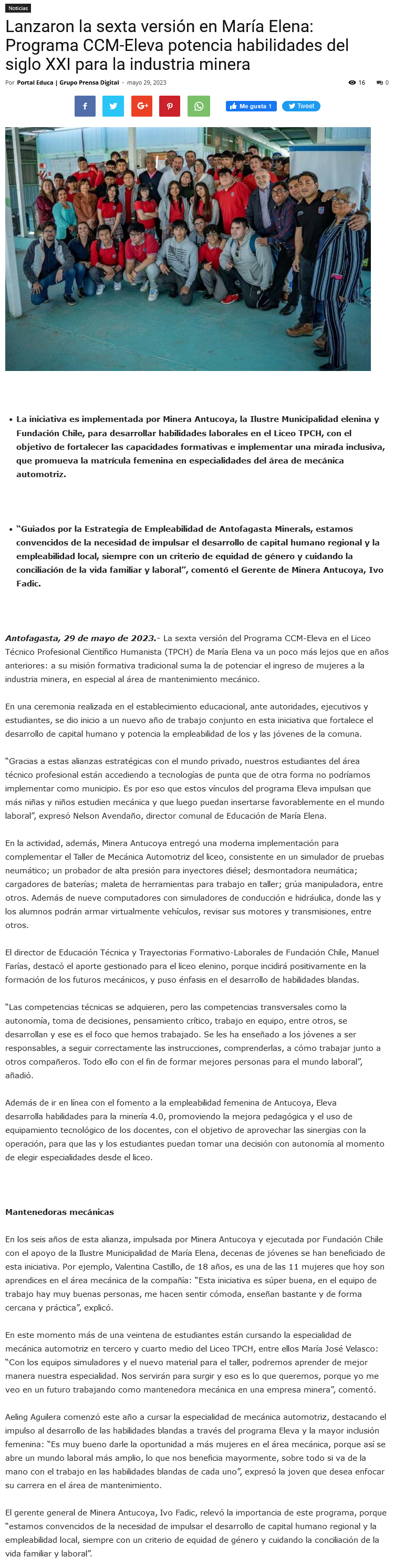 Programa CCM-Eleva potencia habilidades del siglo XXI para la industria minera - (lavozenlinea.cl)