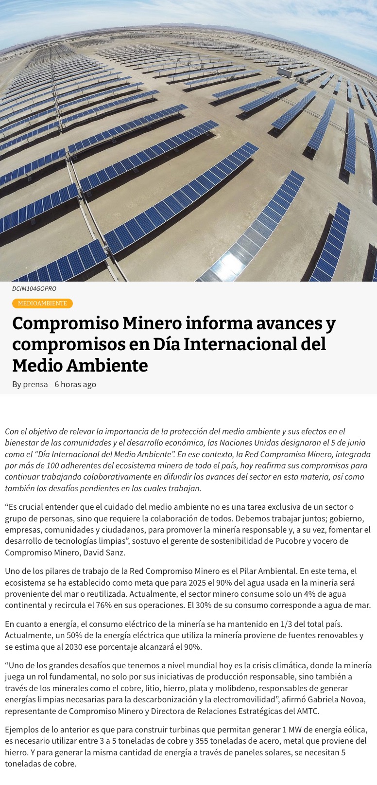 Compromiso Minero da cuenta de sus avances y compromisos en el marco del Día Internacional del Medio Ambiente - (mvcomunicaciones.cl)