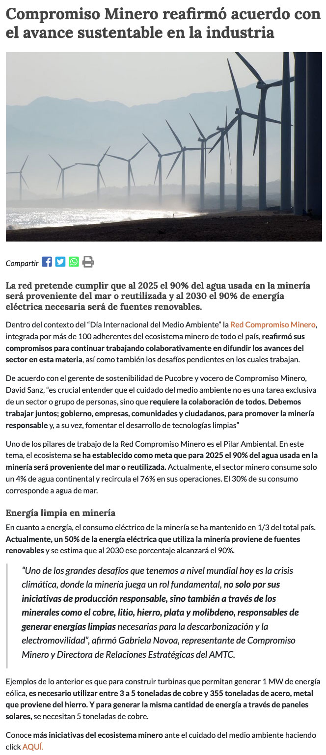 Compromiso Minero da cuenta de sus avances y compromisos en el marco del Día Internacional del Medio Ambiente - (madero.cl)