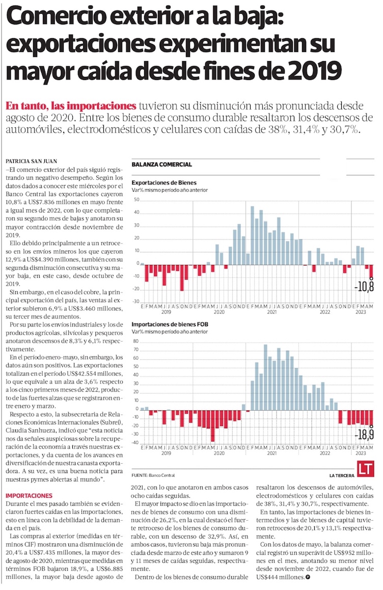 Comercio exterior de Chile se resiente en mayo: exportaciones e importaciones suman nuevas caídas - (Diario Financiero)