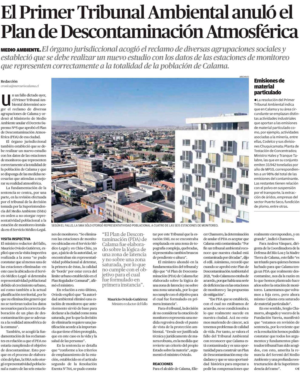 Primer Tribunal Ambiental ordena anular Decreto Supremo que aprobó el Plan de Descontaminación Atmosférica de Calama - (elamerica)