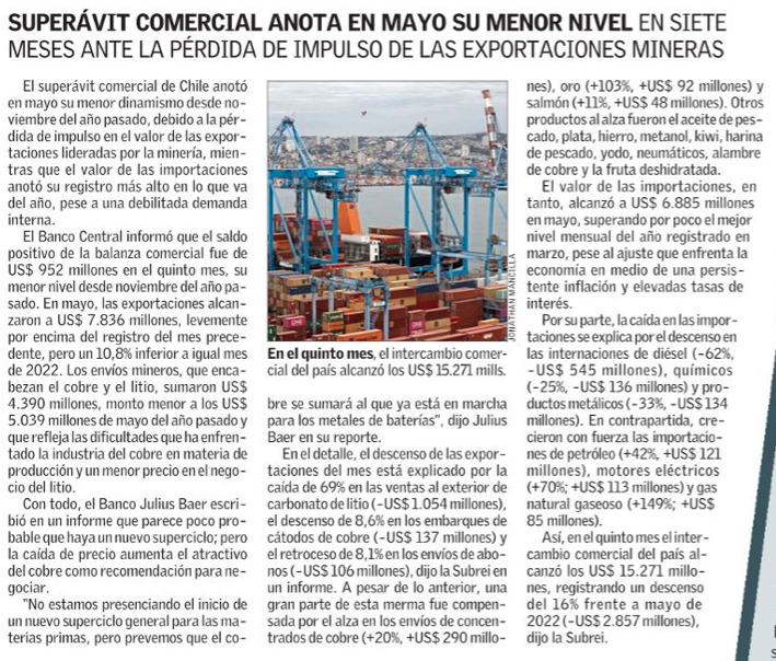 Comercio exterior de Chile se resiente en mayo: exportaciones e importaciones suman nuevas caídas - (Diario Financiero)