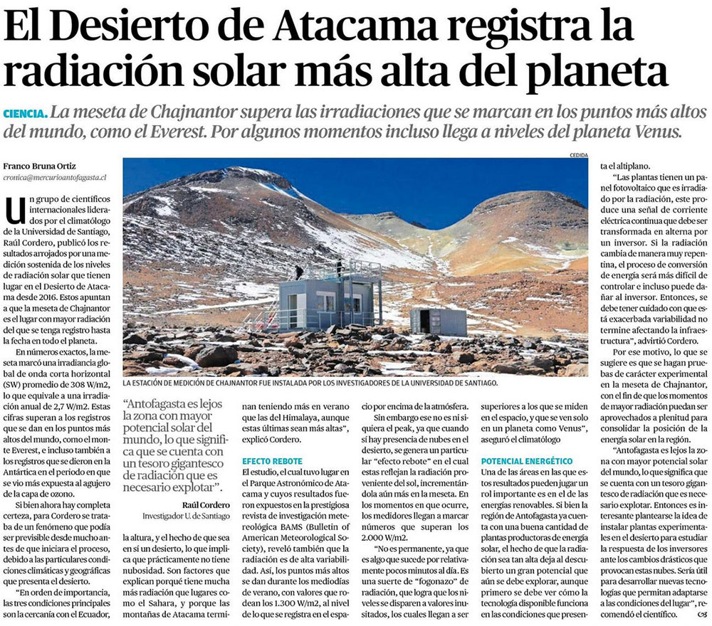 Detectan la radiación solar más alta del mundo en el Desierto de Atacama - (Las Últimas Noticias)