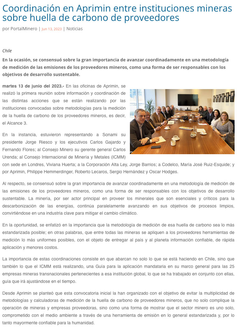 Aprimin e instituciones mineras analizan medición de la huella de carbono de proveedores del sector - (revistacrisol.cl)