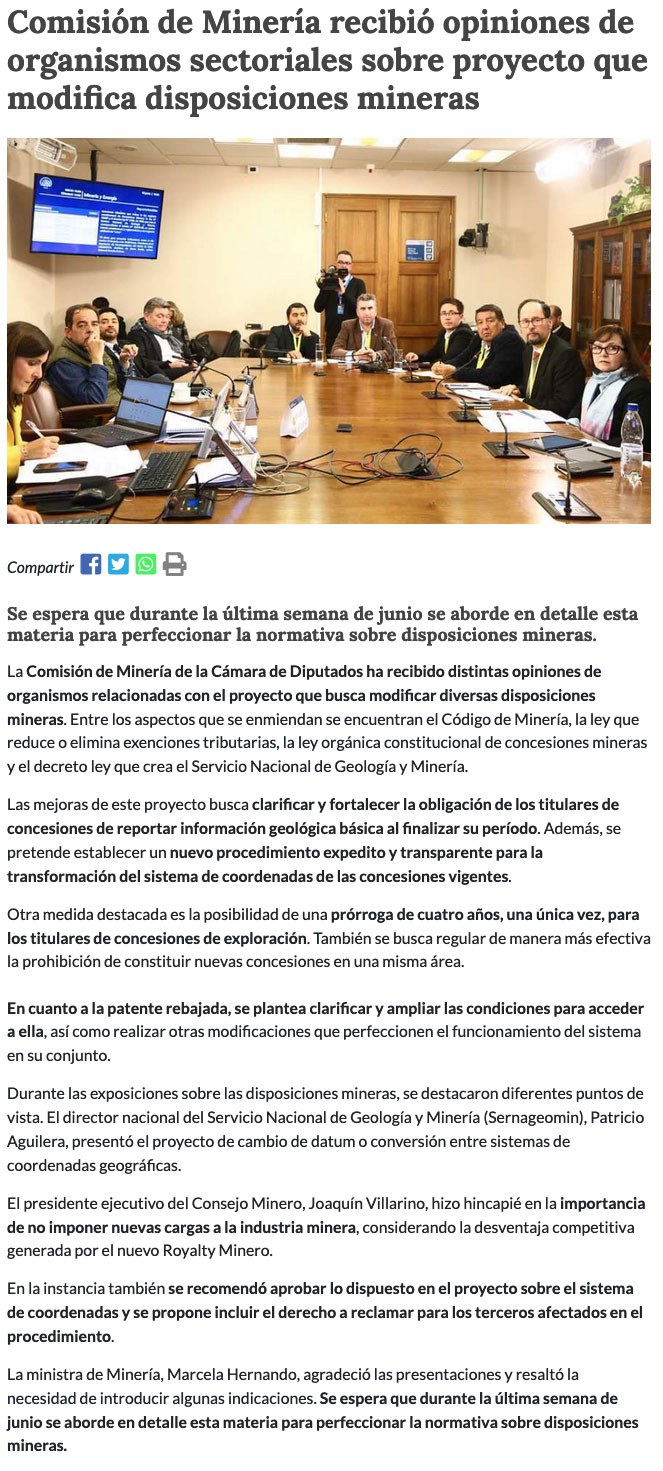 Entidades sectoriales abordan proyecto que modifica diversas disposiciones mineras - (mch.cl)