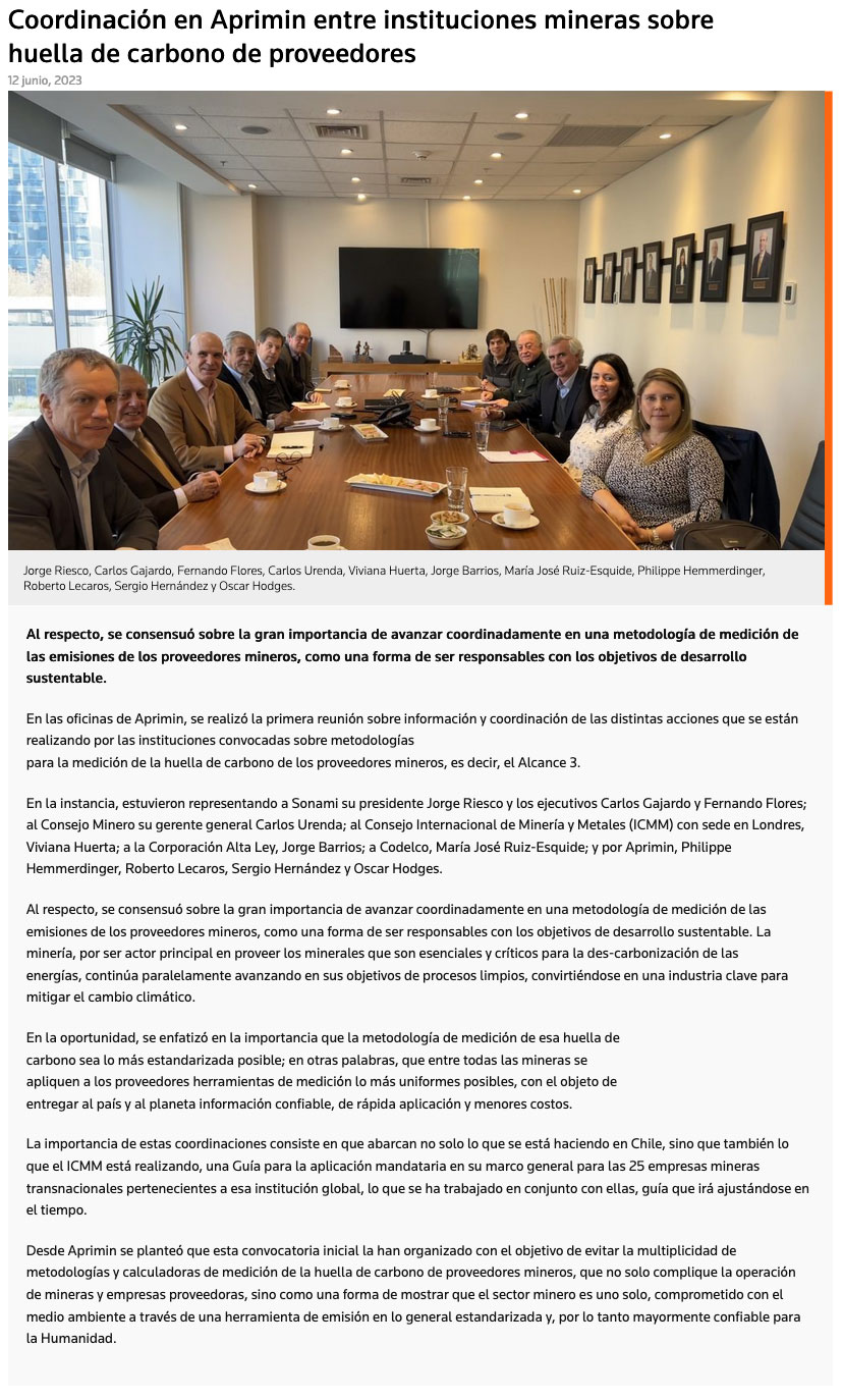 Aprimin e instituciones mineras analizan medición de la huella de carbono de proveedores del sector - (revistacrisol.cl)