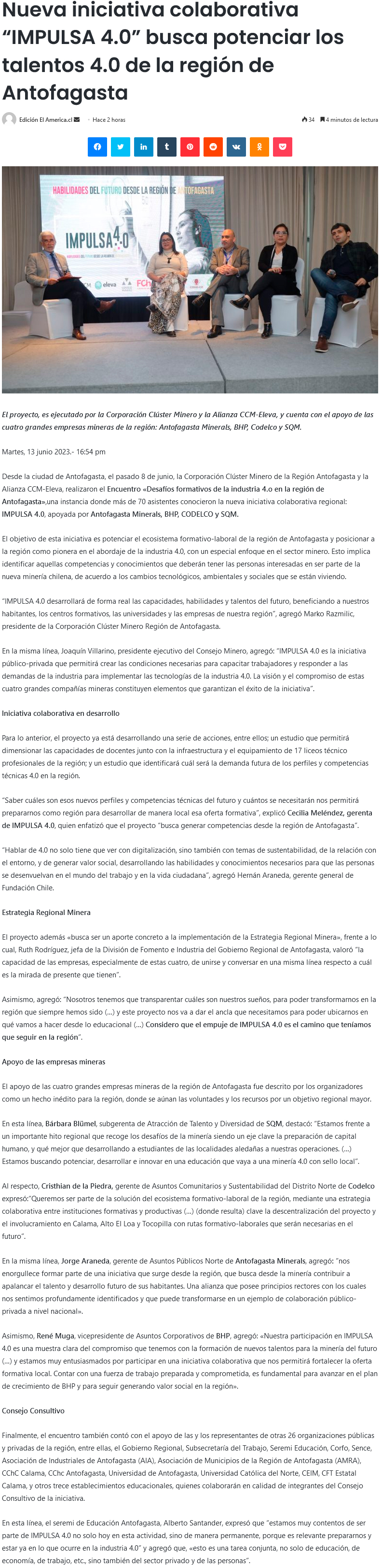 Nueva iniciativa colaborativa “IMPULSA 4.0” busca potenciar los talentos 4.0 de la región de Antofagasta - (norteyenegia.cl)