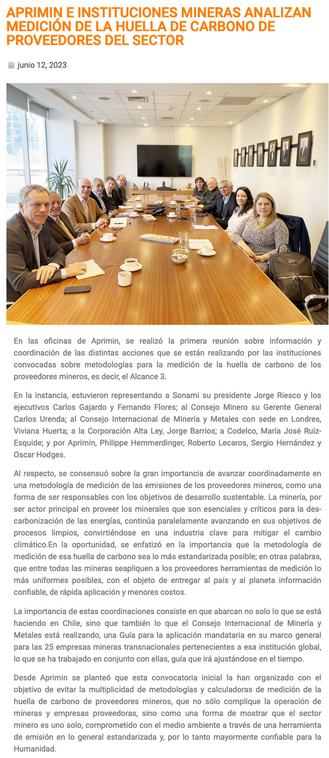 Coordinación en Aprimin entre instituciones mineras sobre huella de carbono de proveedores - (portalminero)