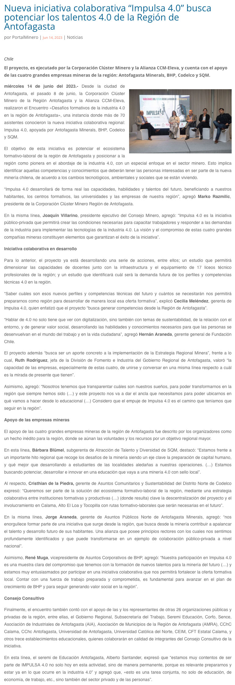 Nueva iniciativa colaborativa “Impulsa 4.0” busca potenciar los talentos 4.0 de la región de Antofagasta - (nuevaminería online)