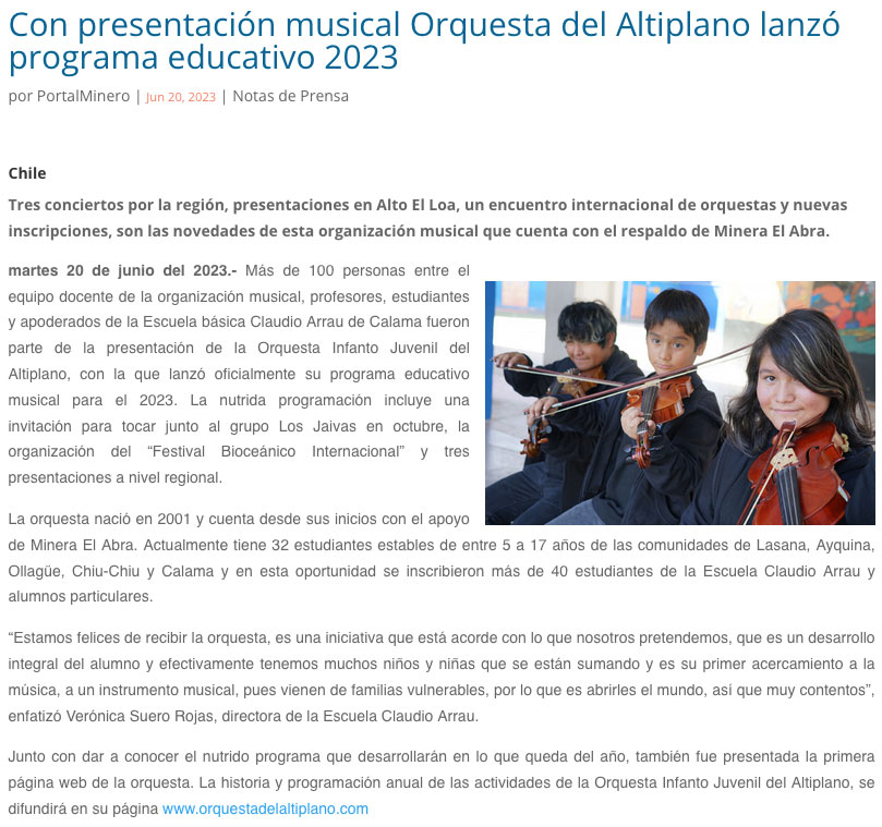 Con presentación musical Orquesta del Altiplano lanzó programa educativo 2023 - (elamerica)