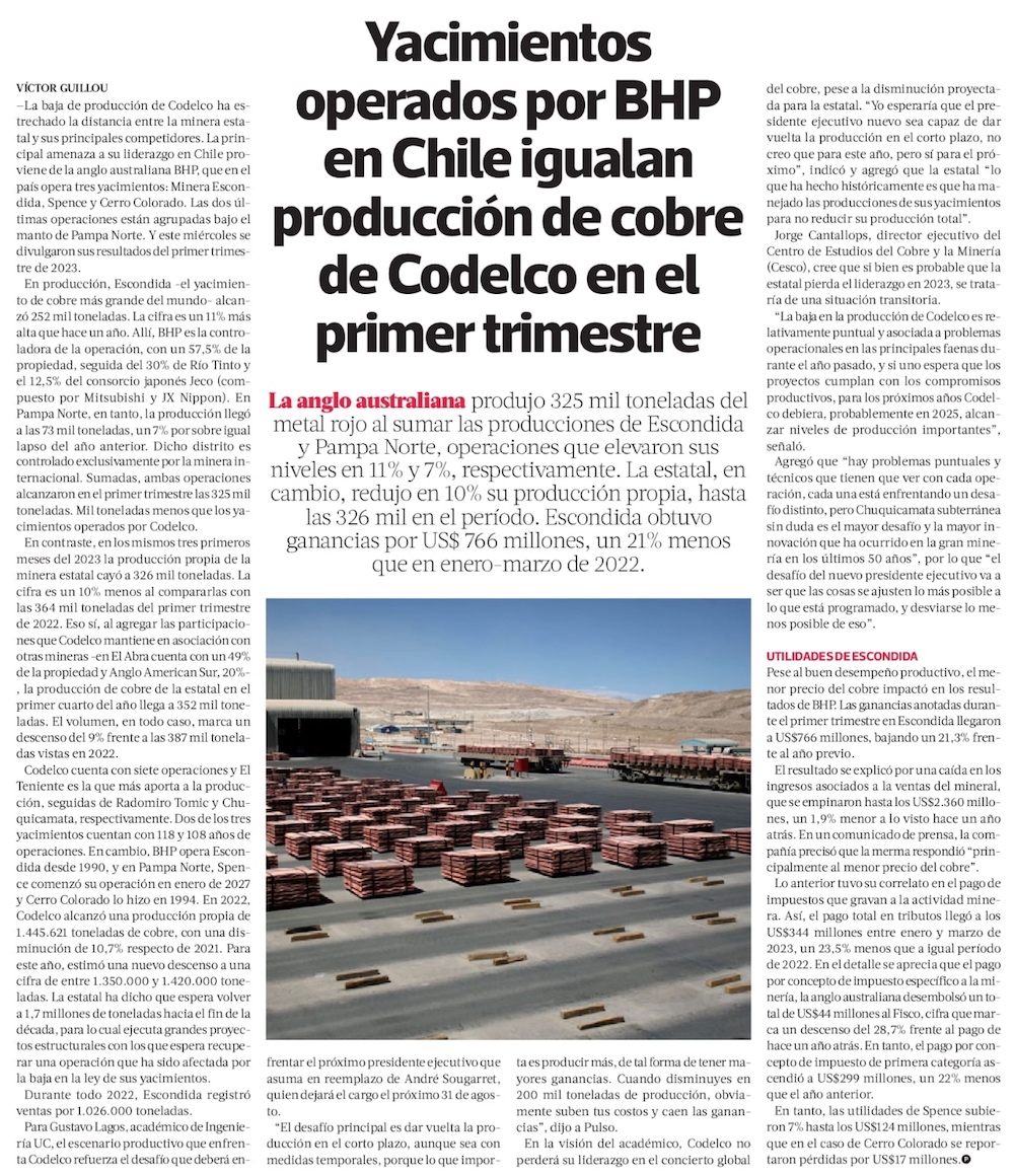 Utilidades de seis mayores mineras privadas caen 29% y aportes al fisco bajan a la mitad - (El Mercurio de Santiago)