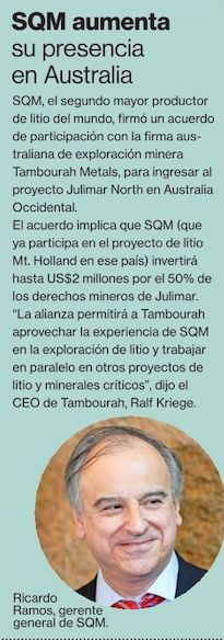 SQM fortalece su presencia global en la minería de litio con inversión en Australia - (reporteminero)