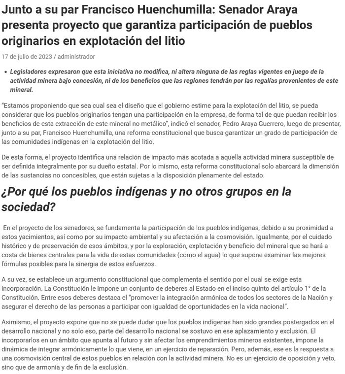 Proyecto busca garantizar participación de las comunidades en la explotación del litio - (El Mercurio de Antofagasta)