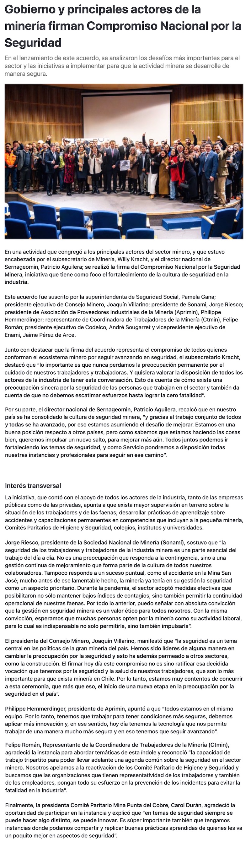 Gobiernos, gremios y trabajadores de la minería firmaron el compromiso nacional por la seguridad - (revistacrisol.cl)