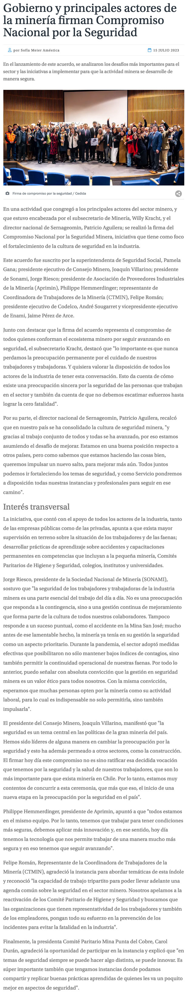 Gobierno y principales actores de la minería firman Compromiso Nacional por la Seguridad - (mvcomunicaciones.cl)
