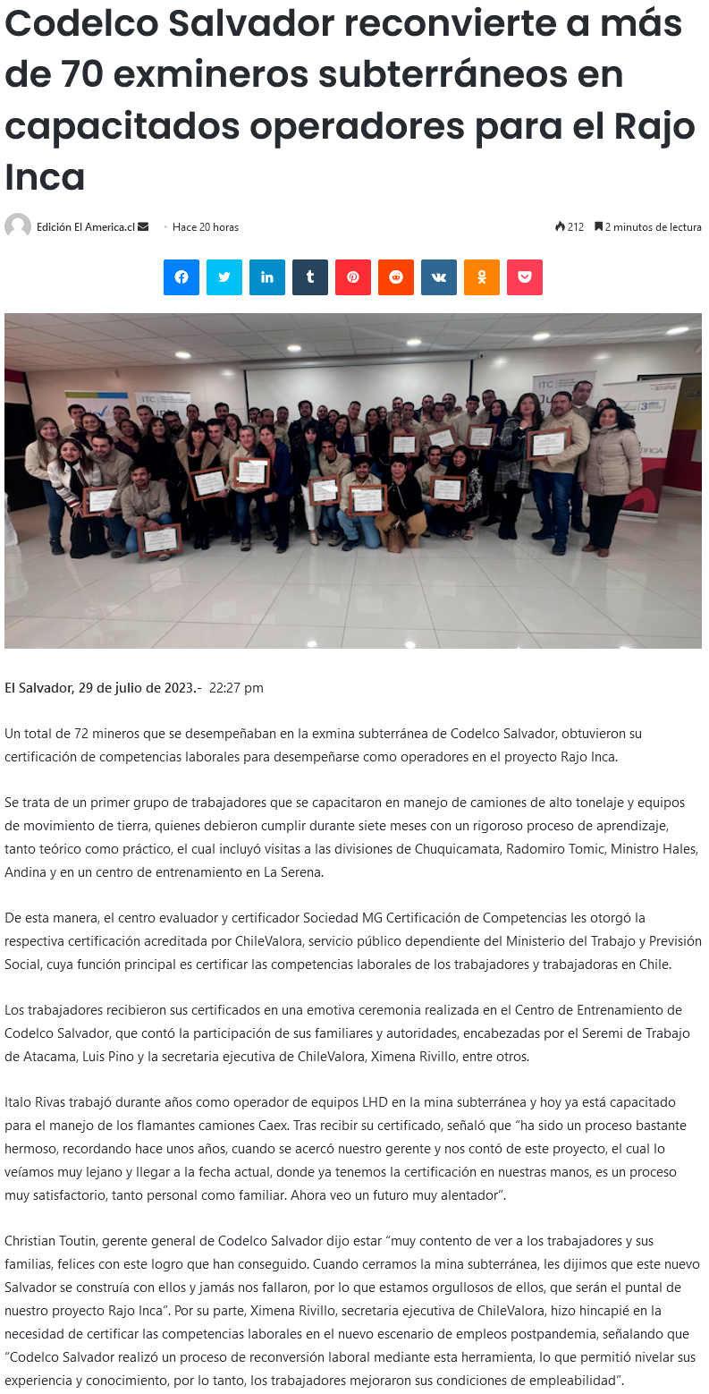 Reconvierten a más de 70 exmineros subterráneos para ser operadores - (El Diario de Atacama)