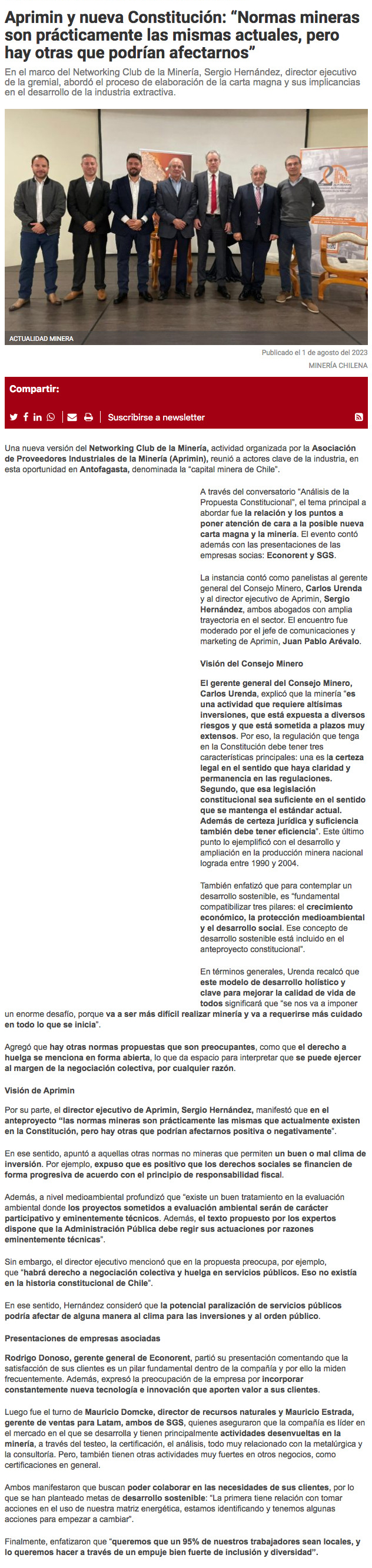 Networking "Club de la Minería" APRIMIN, Análisis Propuesta Constitucional - Antofagasta - (emol)