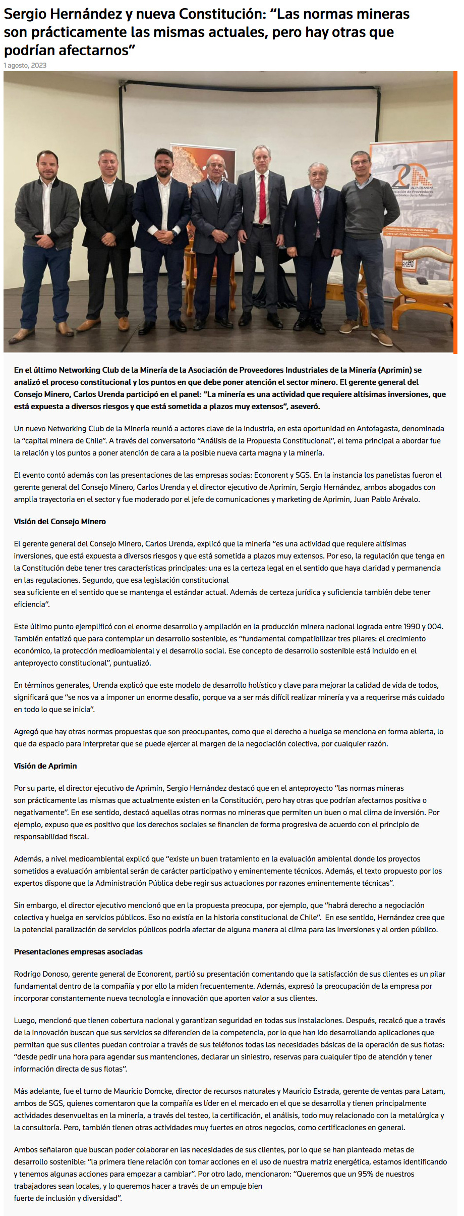 Sergio Hernández, director ejecutivo de APRIMIN sobre nueva Constitución: “Las normas mineras son prácticamente las mismas actuales, pero hay otras que podrían afectarnos” - (mvcomunicaciones.cl)