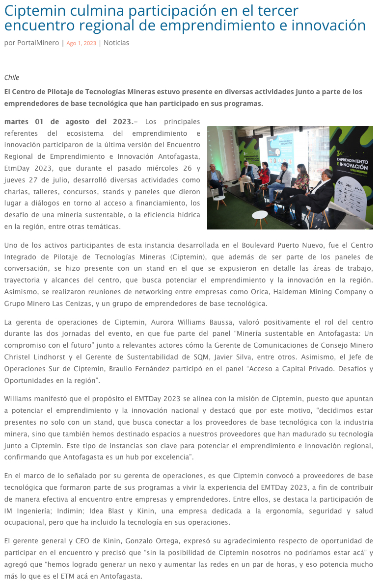 Ciptemin culmina exitosa participación en el tercer encuentro regional de emprendimiento e innovación - (portalinnova.cl)