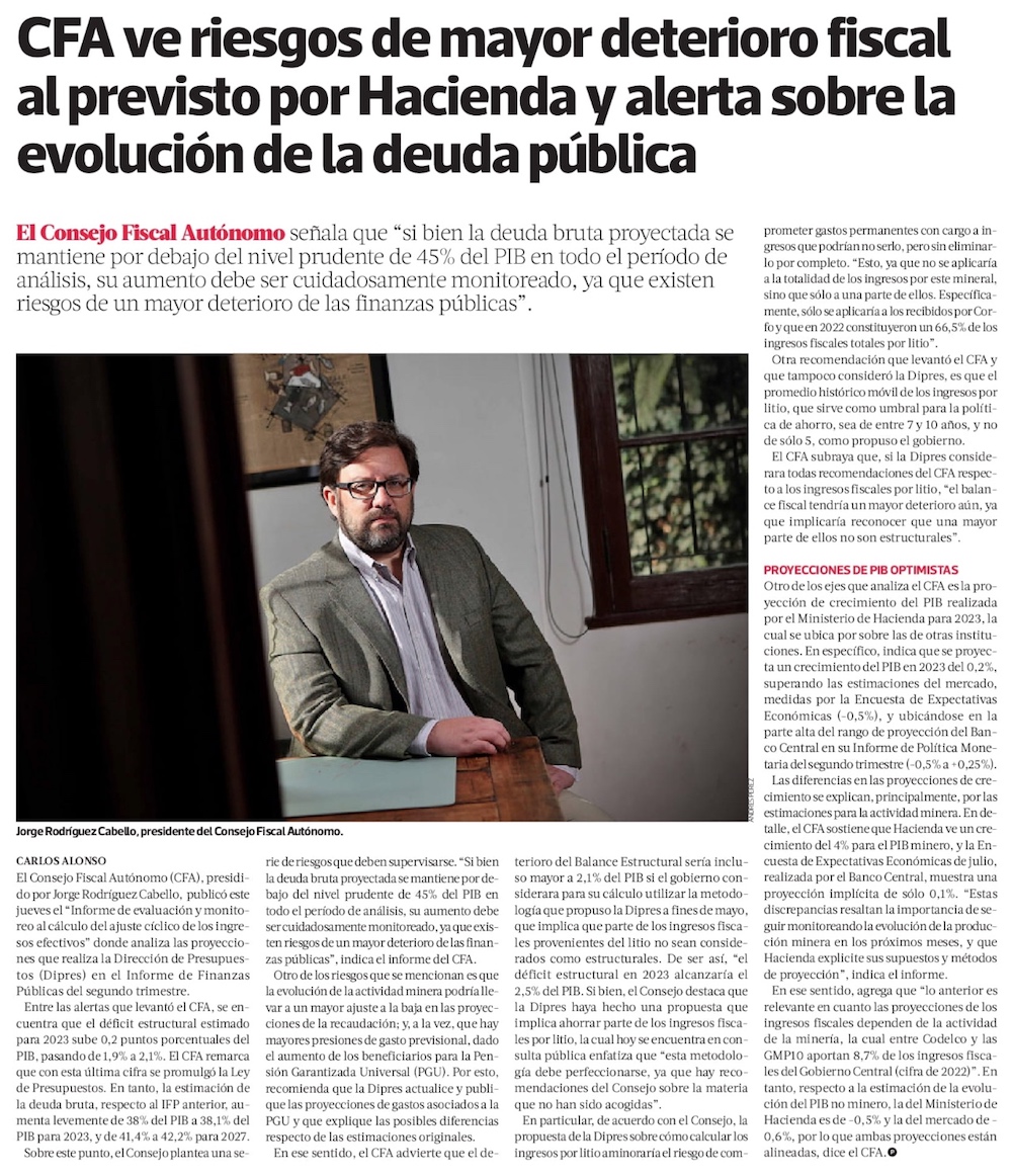 CFA advierte que el resultado fiscal podría ser peor que el previsto por Hacienda - (El Mercurio de Santiago)