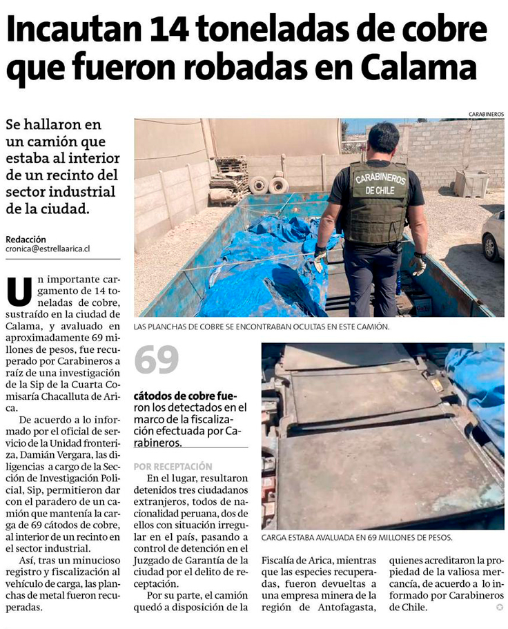 Recuperan en Arica cargamento de cobre que fue robado en Calama - (diarioantofagasta)