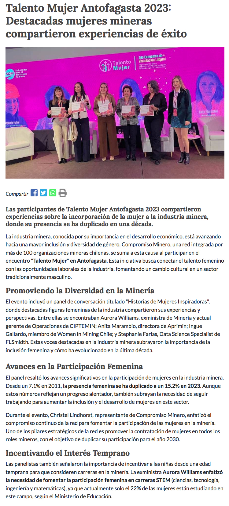 Destacadas mujeres mineras compartieron experiencias de éxito - (antofagastanoticias)