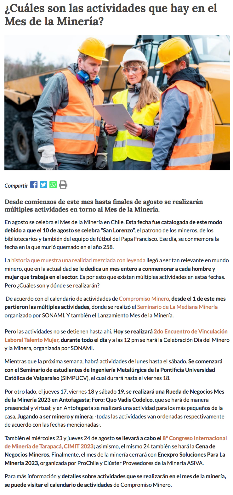 Compromiso Minero: las actividades organizadas por sus adherentes en el marco del mes de la minería - (antofagastanoticias)