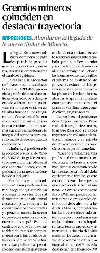 Actores locales esperan avances con ministra Williams y se ratifica nuevo vicepresidente en Enami - (El Diario de Atacama)