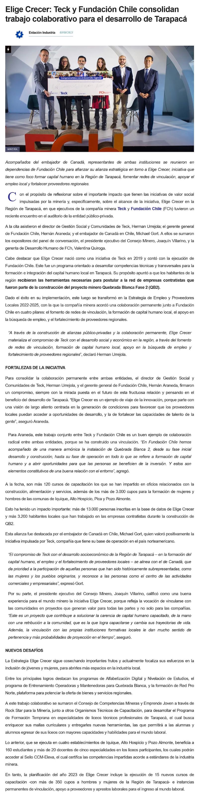 Elige Crecer: Teck y Fundación Chile consolidan trabajo colaborativo para el desarrollo de Tarapacá - (corresponsaliquique.cl)
