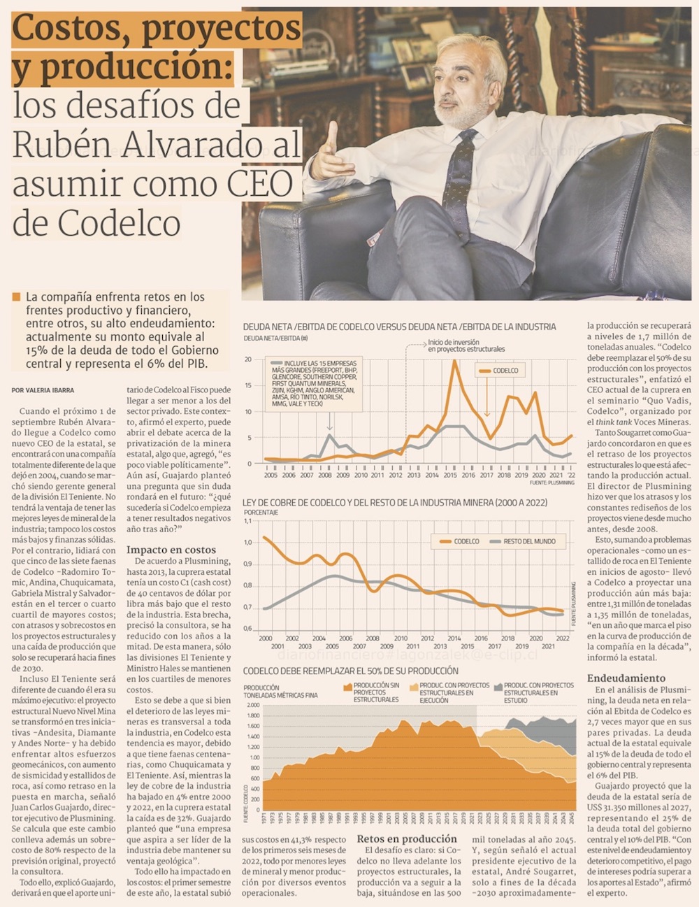 Rubén Alvarado: un experto en crisis y en “hacer ajustes” llega a Codelco - (La Segunda)