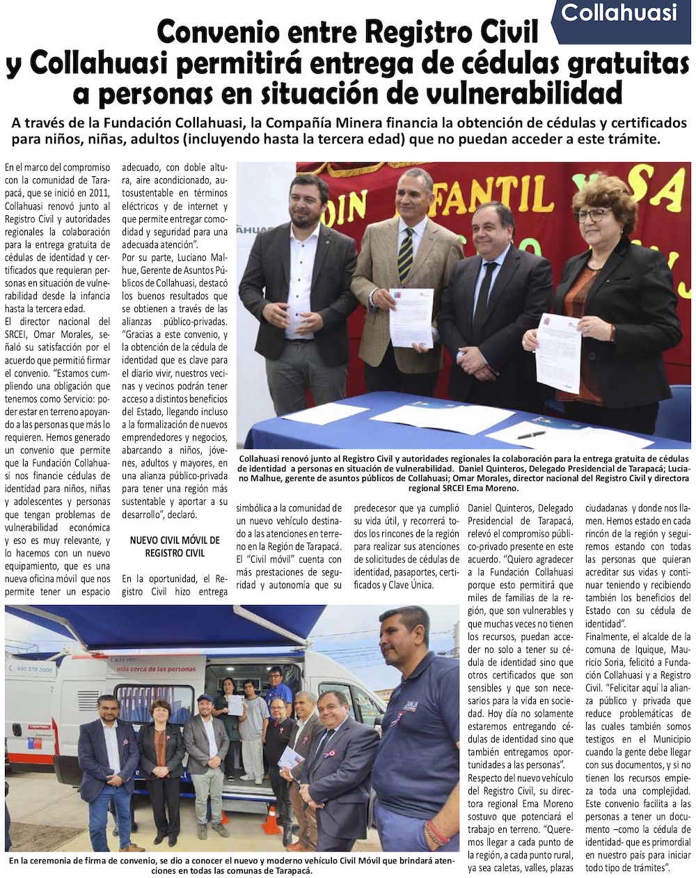 Convenio permitirá entrega de cédulas gratuitas - (Estrella de Iquique)