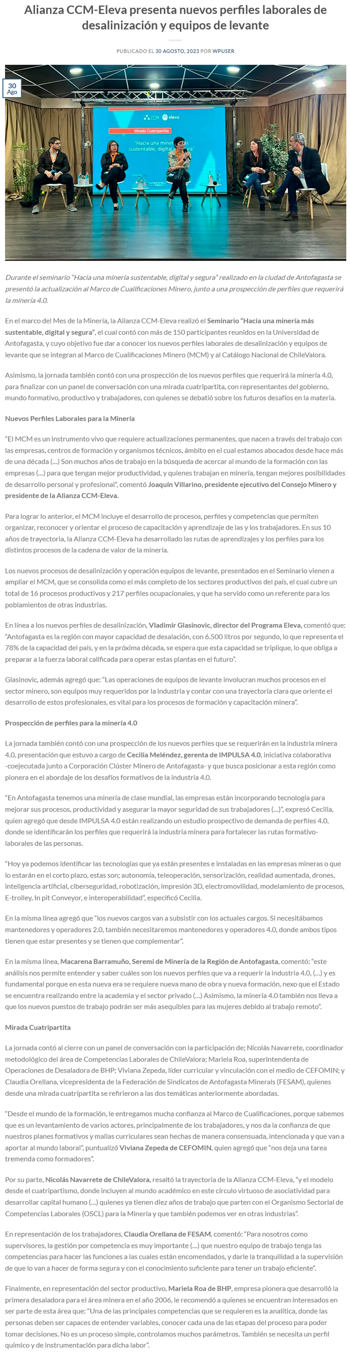 Alianza CCM-Eleva presenta nuevos perfiles laborales de desalinización y equipos de levante - (portalinnova.cl)