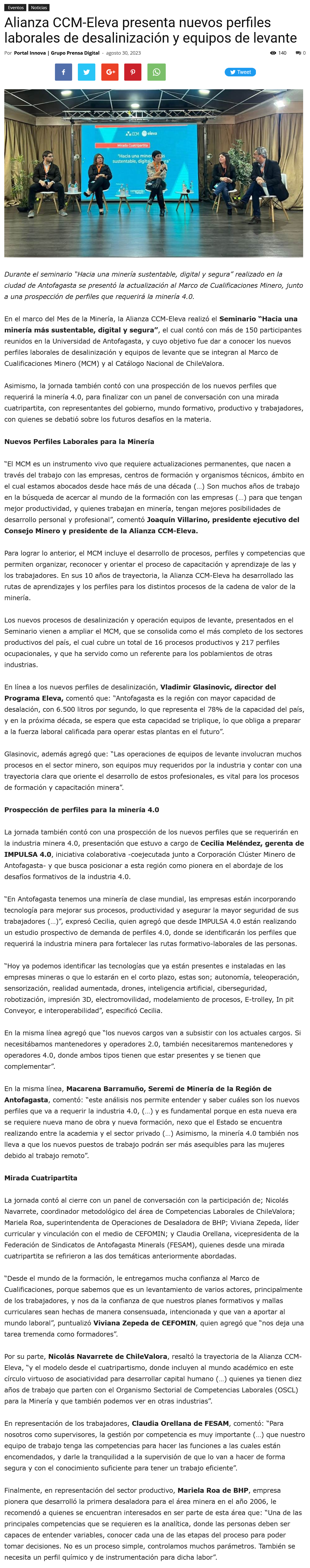 Alianza CCM-Eleva presenta nuevos perfiles laborales de desalinización y equipos de levante - (mvcomunicaciones.cl)