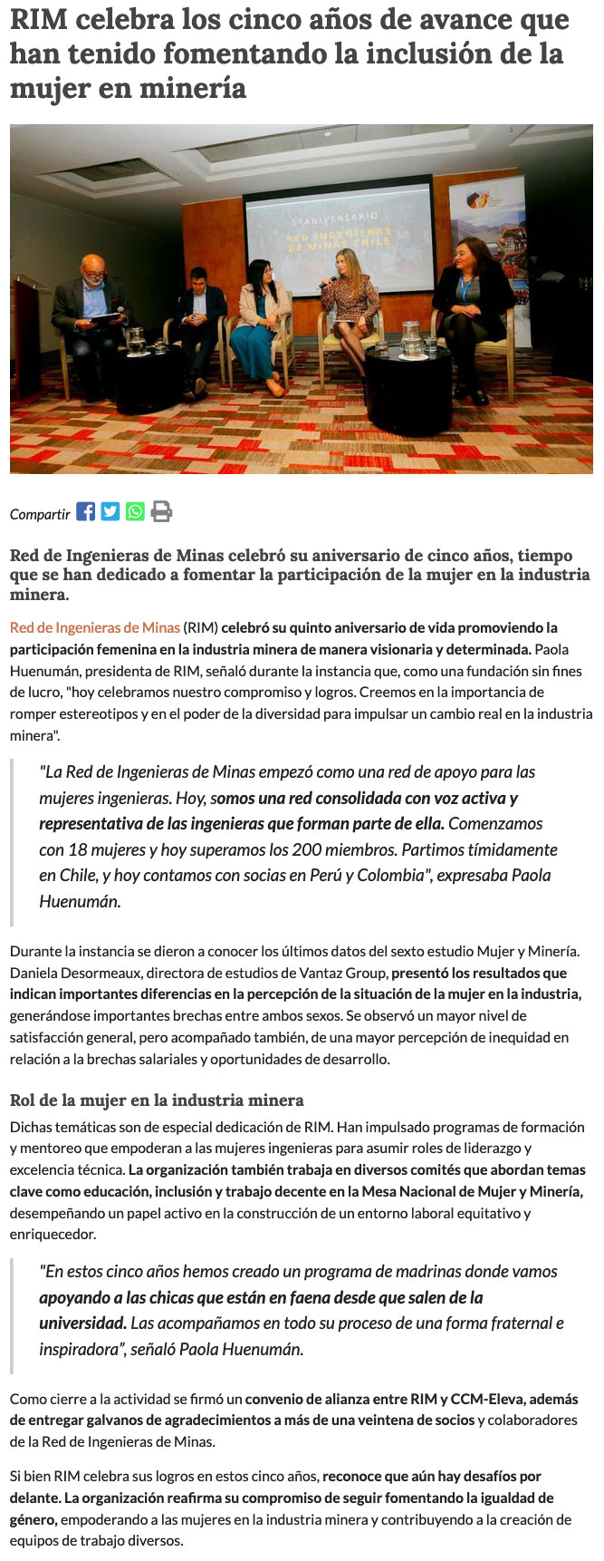 Red de Ingenieras de Minas celebra su quinto aniversario - (mch.cl)