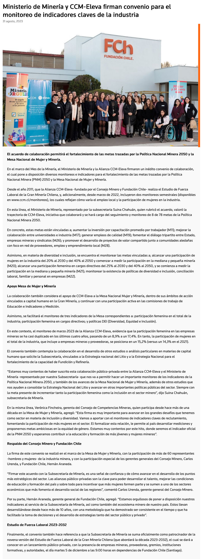 Ministerio de Minería concreta alianza con CCM-Eleva - (mch.cl)