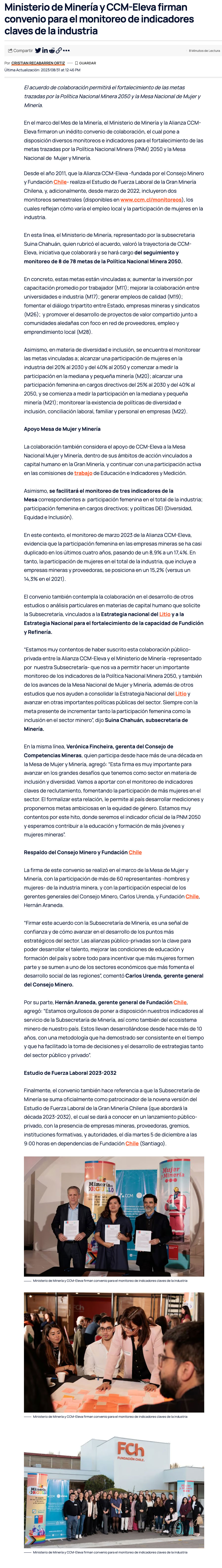Ministerio de Minería y CCM-Eleva firman convenio para monitorear indicadores claves de la industria - (mineriayfuturo.cl)