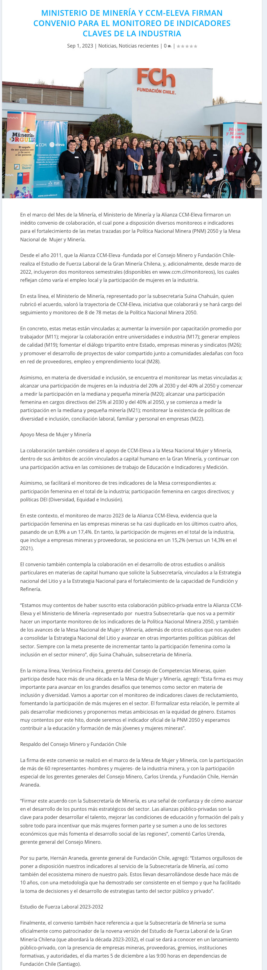 Ministerio de Minería y CCM-Eleva firman convenio para monitorear indicadores claves de la industria - (mineriayfuturo.cl)