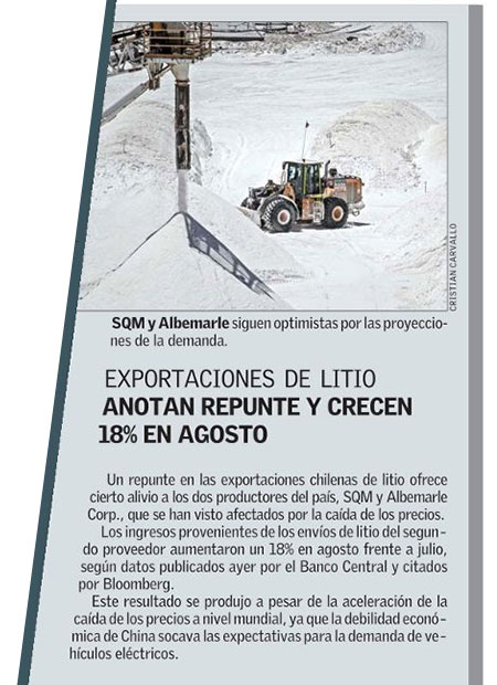 Repunte de exportaciones chilenas de litio ofrece alivio a mineros - (bloomberglinea.com)