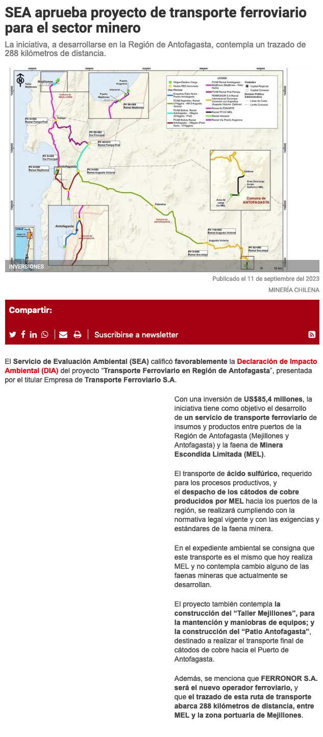Dan visto bueno a proyecto ferroviario que involucrará US$ 85 millones en inversiones - (El Mercurio de Antofagasta)