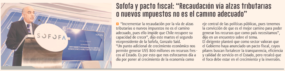 Gremios empresariales insisten en críticas sobre alzas de impuestos y piden priorizar mejoras regulatorias - (El Mercurio de Santiago)