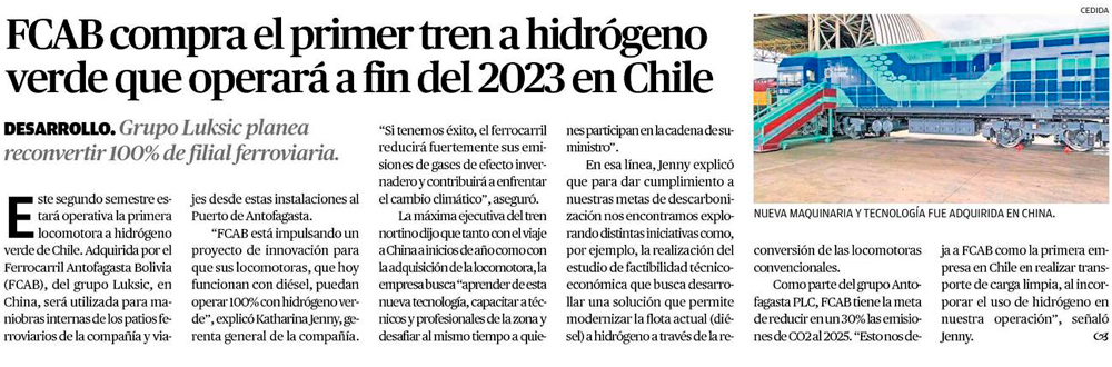 Grupo Luksic compra primer tren a hidrógeno verde en Chile y planea reconvertir 100% de filial ferroviaria - (Diario Financiero)