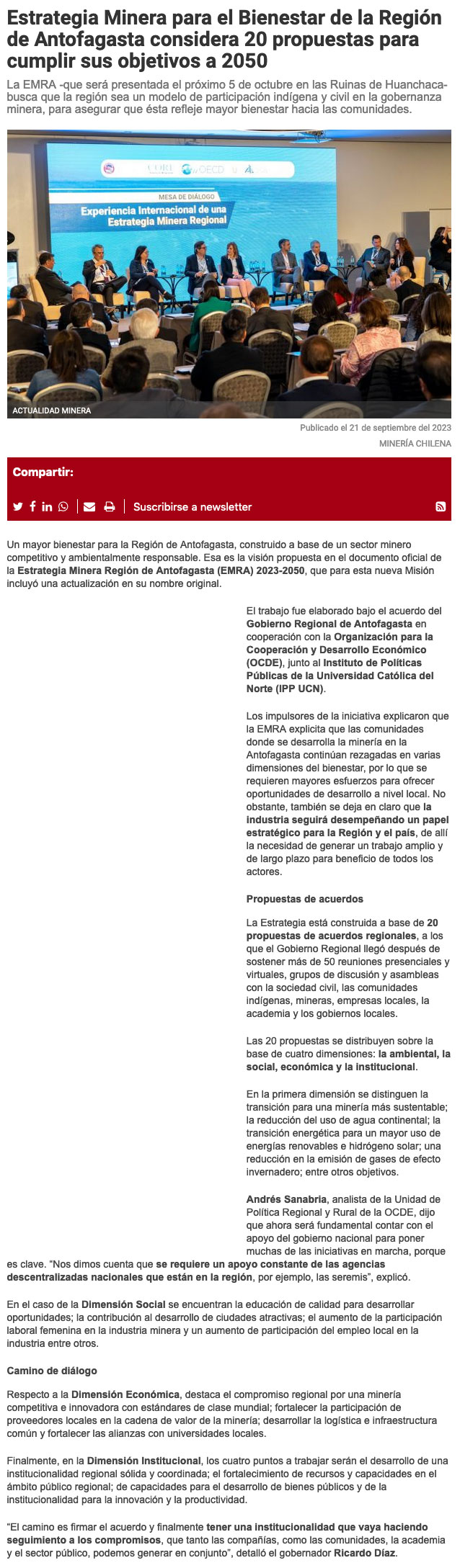 Estrategia Minera Regional considera 20 propuestas para cumplir sus objetivos al 2050 - (soyantofagasta)