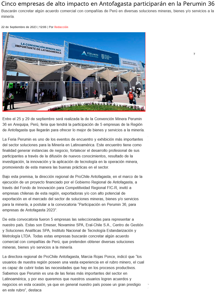 Región de Antofagasta participará en Convención Minera Perumin 36 - (El Mercurio de Antofagasta)