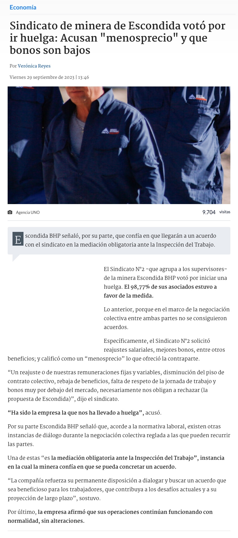 Sindicato de Supervisores de Escondida votó a favor de la huelga - (cooperativa online)