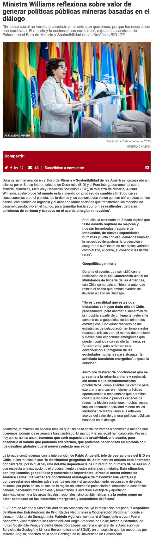 En foro intergubernamental de sostenibilidad BID-IGFMinistra Williams reflexiona sobre el valor de generar políticas públicas mineras basadas en el diálogo - (mvcomunicaciones.cl)